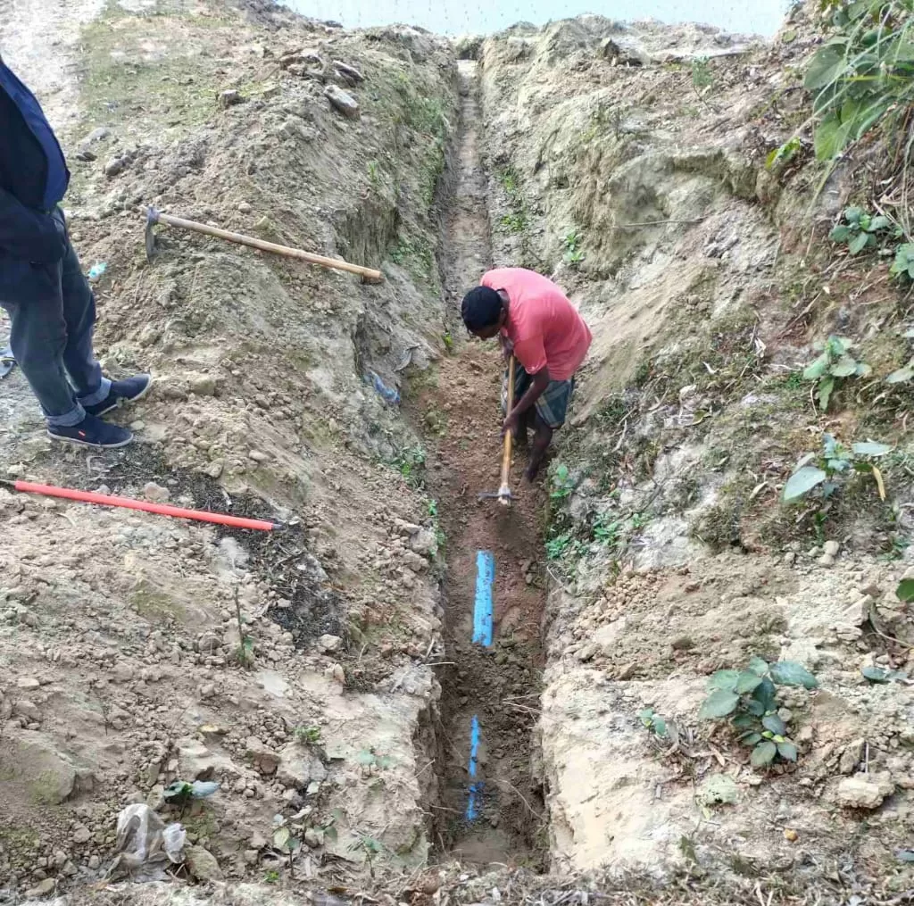 সরেজমিন অনুসন্ধানে জানা যায়, উপজেলার কিশোরগাড়ী ইউনিয়নের বুজরুক টেংরা গ্রামের মৃত কছিম উদ্দিনের ছেলে হারুন-অর-রশিদ ২০১৭ সাল থেকে একটি সেচ পাম্প চালিয়ে আসছিল। এ বছর বাঁধের অপর পাশে জমিগুলো তার নিজের পাম্পের নিয়ন্ত্রনে নেওয়ার জন্য বাঁধটির প্রায় ৫৮০ ফুট জায়গা কর্তন করে ড্রেন তৈরি করেন। ড্রেন তৈরী করণে আগামী বর্ষা মৌসুমে বাঁধটি ভেঙ্গে পড়ার বড় ধরণের হুমকী হয়ে দাড়িয়েছে ৷