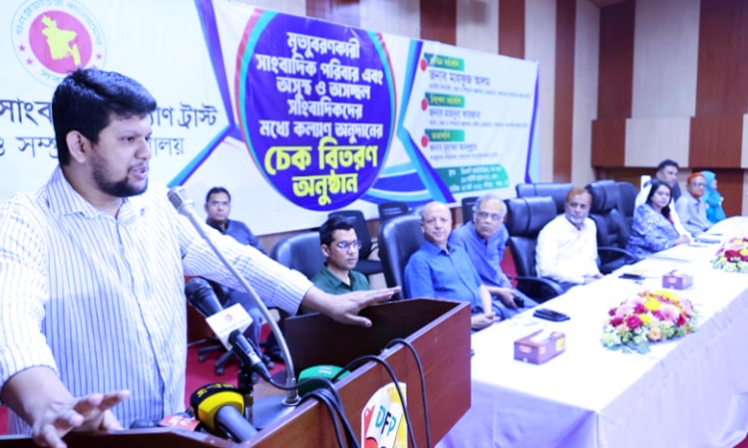 শনিবার রাজধানীর তথ্য ভবনে বাংলাদেশ সাংবাদিক কল্যাণ ট্রাস্টের উদ্যোগে মৃত্যুবরণকারী সাংবাদিক পরিবার এবং অসুস্থ-অসচ্ছল সাংবাদিকদের মাঝে কল্যাণ অনুদানের চেক বিতরণ অনুষ্ঠানের প্রধান অতিথির বক্তব্যে তিনি এ কথা বলেন।