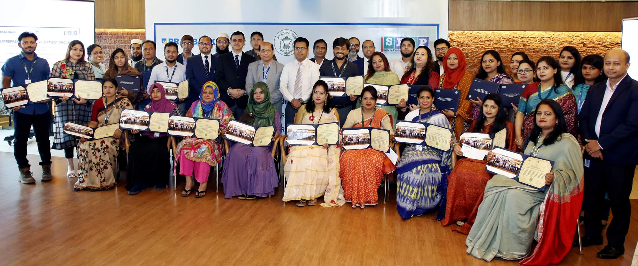 ৫০ জন সম্ভাবনাময় ও উদ্যমী উদ্যোক্তা এখন তাদের নিজেদের ব্যবসাকে প্রবৃদ্ধির পথে এগিয়ে নিতে পুরোপুরি প্রস্তুত। বাংলাদেশ ব্যাংক-এর সহায়তায় দু’টি ব্যাচে ৫০ জন উদ্যোক্তার জন্য বিশেষ প্রশিক্ষণের আয়োজন করে ব্র্যাক ব্যাংক। আজ বৃহস্পতিবার ঢাকায় ব্র্যাক ব্যাংক-এর প্রধান কার্যালয়ে অনুষ্ঠিত হয় ‘উদ্যোক্তা উন্নয়ন কর্মসূচি’ শীর্ষক প্রশিক্ষণের দ্বিতীয় ব্যাচের সমাপনী অনুষ্ঠান। এর আগে ২৭ মার্চ, ২০২২ শেষ হয়েছিল প্রথম ব্যাচের প্রশিক্ষণ। দ্বিতীয় ব্যাচের ২৫ জন উদ্যোক্তার হাতে সনদপত্র তুলে দেন বাংলাদেশ ব্যাংক-এর এক্সিকিউটিভ ডিরেক্টর মো. ওবায়দুল হক। অনুষ্ঠানে আরও উপস্থিত ছিলেন ব্র্যাক ব্যাংক-এর ম্যানেজিং ডিরেক্টর অ্যান্ড সিইও সেলিম আর. এফ. হোসেন, ডেপুটি ম্যানেজিং ডিরেক্টর অ্যান্ড হেড অব এসএমই ব্যাংকিং সৈয়দ আব্দুল মোমেন এবং বাংলাদেশ ব্যাংক-এর এসএমই অ্যান্ড স্পেশাল প্রোগ্রামস বিভাগের জয়েন্ট ডিরেক্টর মোহাম্মদ জাহিদ ইকবাল। দ্বিতীয় ব্যাচের ২৫ জন উদ্যোক্তার মধ্যে বিসিক নারী ও যুব উদ্যোক্তা ফোরামের (BWYEF) ৮জন অংশগ্রহণ করেন।