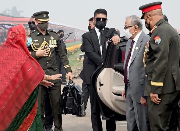 রাষ্ট্রপতি ও প্রধানমন্ত্রীর বিজয় দিবসের কুচকাওয়াজে অংশগ্রহণ