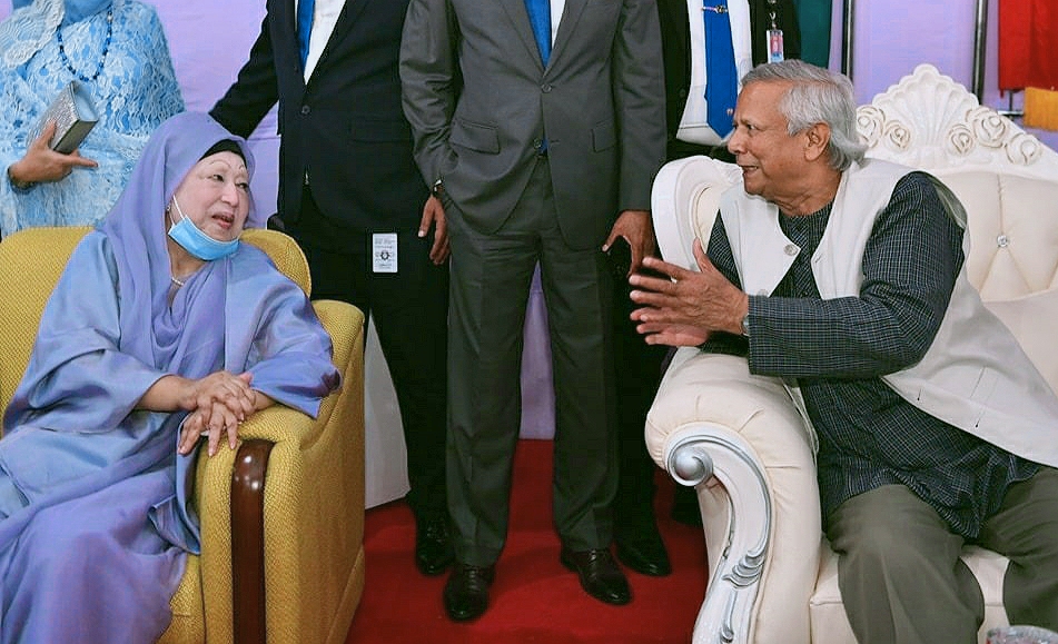 সংবর্ধনা অনুষ্ঠানে অধ্যাপক মুহাম্মদ ইউনূস এবং খালেদা জিয়া পাশাপাশি বসেন। এ সময় প্রধান উপদেষ্টার সঙ্গে খালেদা জিয়া কুশল বিনিময় করেন। খালেদা জিয়াকে বেশ উৎফুল্ল দেখা যায় এবং তাদের হাস্যোজ্জ্বল কথাবার্তা বলতে দেখা যায়।
