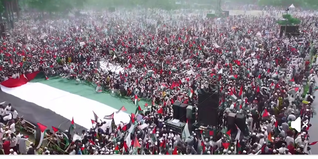 মিজানুর রহমান আজহারি স্লোগানে স্লোগানে ফিলিস্তিনিদের প্রতি সংহতি জানিয়ে বলেন, আজকে সোহরাওয়ার্দী উদ্যানে জনতার মহাসমুদ্রে উপস্থিত হয়ে আমরা বুঝতে পেরেছি এই জনসমুদ্র ফিলিস্তিন ও আল-আকসার প্রতি বাংলাদেশের জনগণের সম্মিলিত ভালোবাসার বহিঃপ্রকাশ। তিনি আরও বলেন, ভৌগোলিক ভাবে বাংলাদেশ ফিলিস্তিন থেকে অনেক দূরে হলেও সকলের হৃদয়ে বাস করছে একেকটি ফিলিস্তিন।