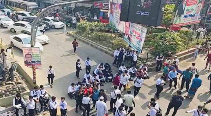 ঢাকা কলেজের স্বাতন্ত্র অস্তিত্ব রক্ষা এবং প্রস্তাবিত ও বাস্তবায়নাধীন ‘ঢাকা সেন্ট্রাল ইউনিভার্সিটি’–এর স্কুলিং মডেল বাতিলের দাবিতে সকাল সাড়ে ১০টার দিকে রাজধানীর সায়েন্স ল্যাবরেটরি মোড় অবরোধ করে ঢাকা কলেজের উচ্চমাধ্যমিকের শিক্ষার্থীরা। এর প্রায় এক ঘণ্টা পর অবরোধ তুলে নিয়েছেন তারা।